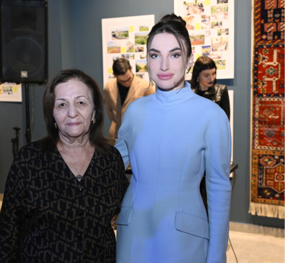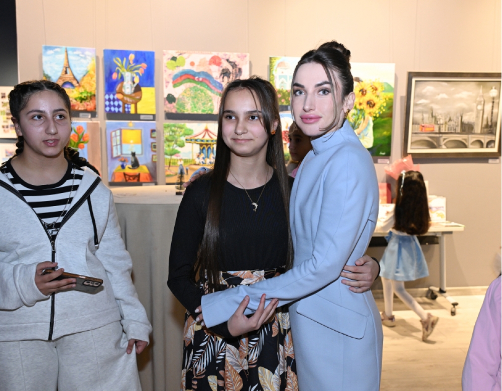 Arzu Əliyeva və Alena Əliyeva mərkəzin fəaliyyəti ilə yaxından tanış olub, sərgilənən əl işlərinə baxış keçirib, qonaqlar və sərgi iştirakçıları ilə şəkil çəkdiriblər.