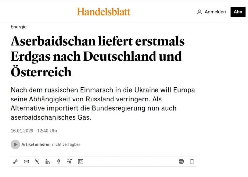 Almaniyada iqtisadiyyat sahəsində ən mühüm nəşr kimi tanınan “Handelsblatt” qəzeti bu məsələyə enerji siyasəti prizmasından yanaşaraq, Azərbaycan qazının Avropanın təbii qaz idxalının şaxələndirilməsi strategiyasında əhəmiyyətli rol oynadığını qeyd edib. Almaniya hökumətinin Rusiyadan asılılığı azaltmaq strategiyası çərçivəsində Azərbaycan qazının idxalına başlanmasının önəmi vurğulanıb. Nəşr bildirib ki, Azərbaycan qazının Avropada mövqeyinin güclənməsi həm Almaniya, həm də ümumilikdə Avropa üçün enerji təhlükəsizliyinin təminatına xidmət edir.