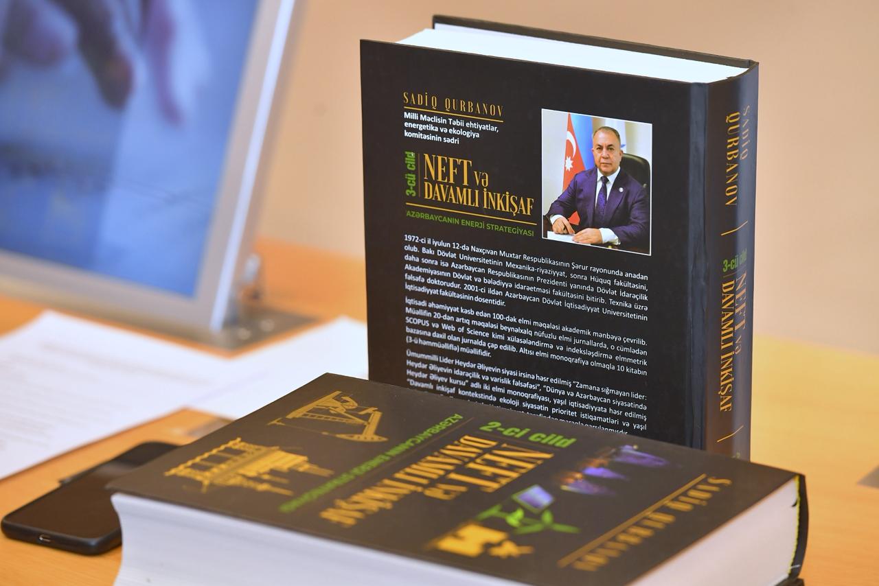 “İki sahil” xəbər verir ki, tədbir çərçivəsində komitə sədri Sadiq Qurbanovun “Neft və Davamlı İnkişaf: Azərbaycanın Enerji Strategiyası” adlı kitabının təqdimatı baş tutub.