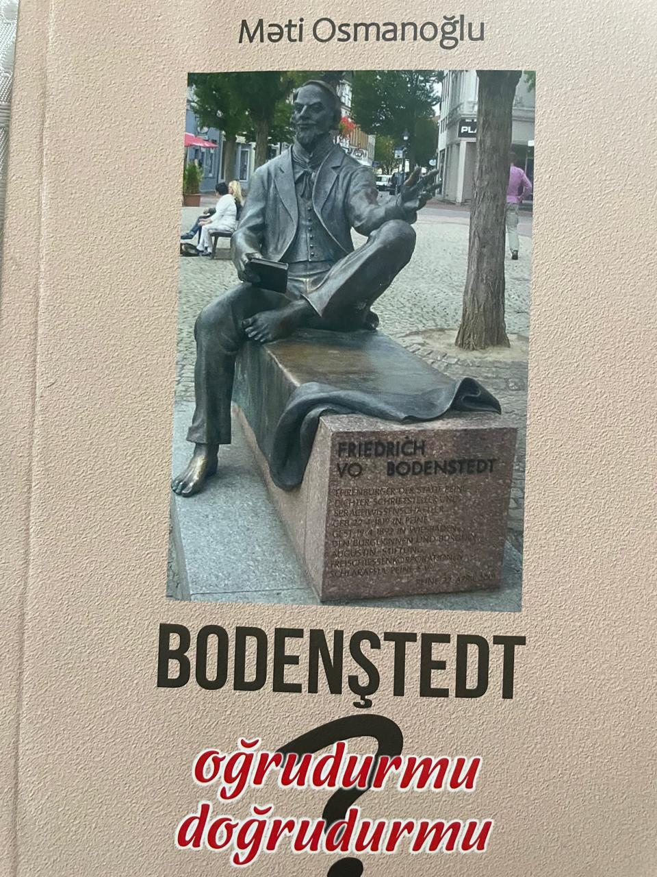 Bakıda fəaliyyət göstərən “Füyuzat” yayın evi tərəfindən ötən il çap edilmiş “Bodenştedt oğrumu, doğrumu?” adlı kitab ön söz, dörd fəsil və son sözdən ibarət olmaqla 247 səhifədir. Nəşrdə əksini tapan faktlar və müəllifin mühakimələri araşdırmaçılar üçün olduqca cəlbedicidir. Xüsusilə, sitatlar və onlar arasındakı bağlantı əsərin rəvan şəkildə oxunmasına yetərincə təsir göstərir. Nəşrin oxucular tərəfindən böyük rəğbət qazanacağı şübhəsizdir. Yüksək poliqrafiya, nəfis dizayn və cəlbedici tərtibatla nəşr olunan əsərin daha bir özəlliyi onun məhz sarı (əsl kitab kağızı) kağızla çap edilməsidir. Möhkəm cansağlığı və daha böyük yaradıcılıq arzusu ilə müəllifə təbrik edir “davamı gəlsin!”-deyirəm.