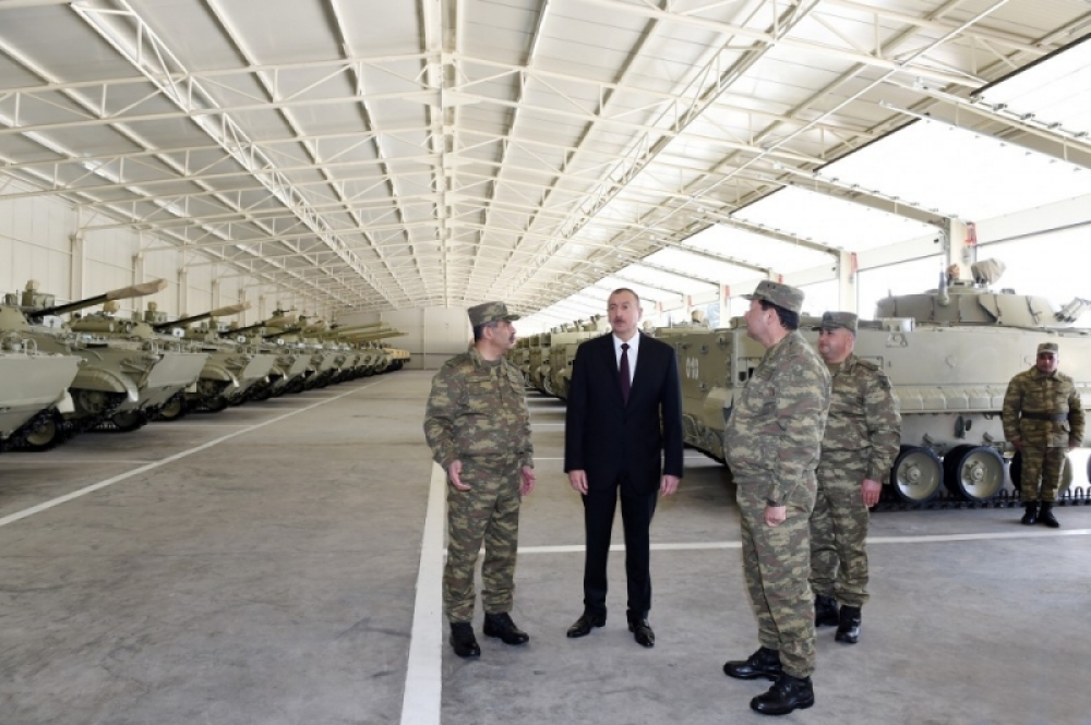 Ali Baş Komandan İlham Əliyev hərbi hissənin döyüş texnikasına baxdı, döyüş maşınlarından birini idarə etdi.