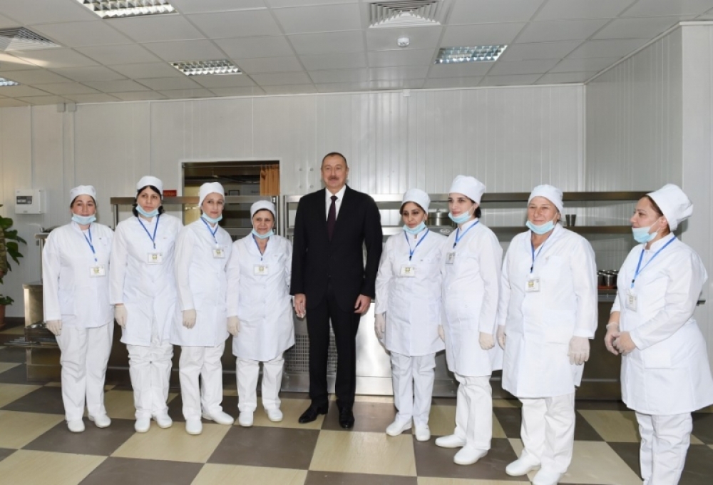 Dövlətimizin başçısı burada yaradılmış şəraitlə də tanış oldu, yeməkxananın xidmət heyəti ilə söhbət etdi.