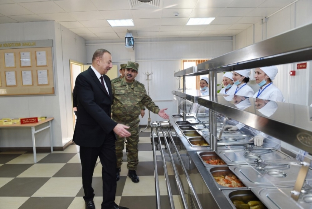 Prezident İlham Əliyev: Əvvəllər bu işləri əsgərlər görürdülər, yemək bişirirdilər. Bu, onları əsas işindən ayırırdı. İndi bu işə mülki vətəndaşlar cəlb olunub, həm də yaxşı maaş verilir, qadınlar da işləyir. Həm də çox yaxşı yemək bişirirsiniz.