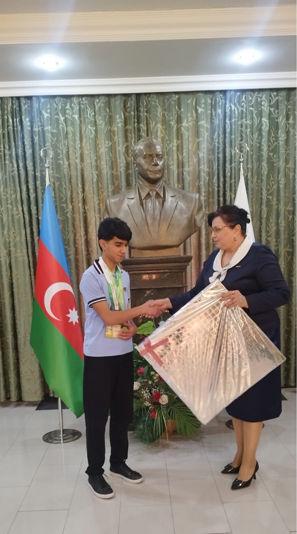 Sonda YAP Bərdə rayon təşkilatının sədri Faqət Şadlinskaya medalçı gənclərə uğurlar arzulayıb və onlara təşkilat adından hədiyyələr təqdim edib.