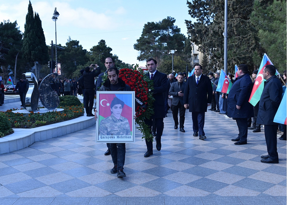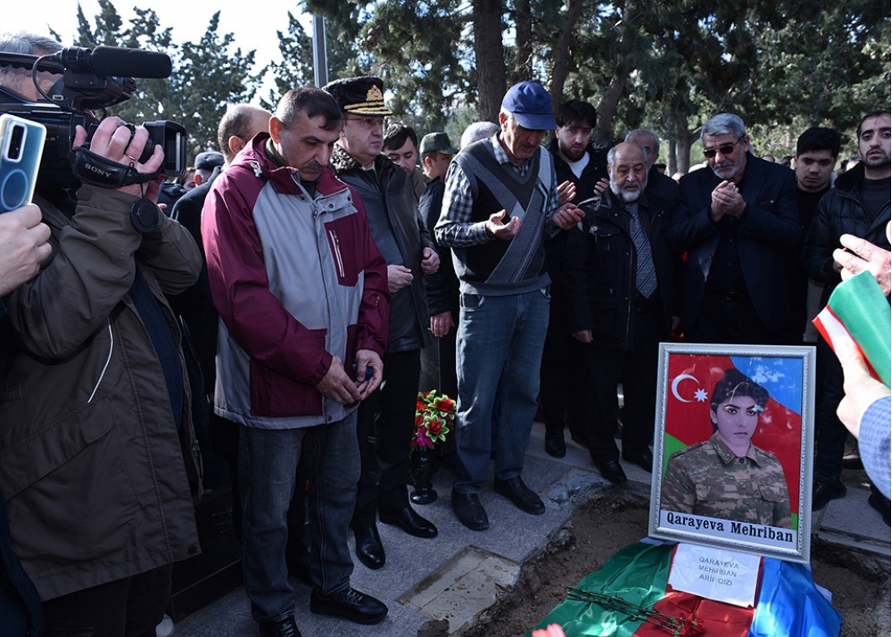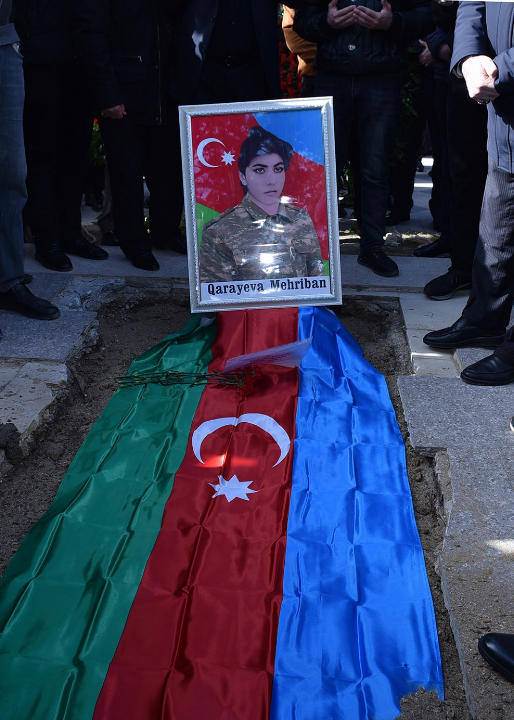 Şəhid Mehriban Qarayevanın nəşinin qalıqları hərbi orkestrin və yaylım atəşinin müşayiəti ilə dəfn olunub.