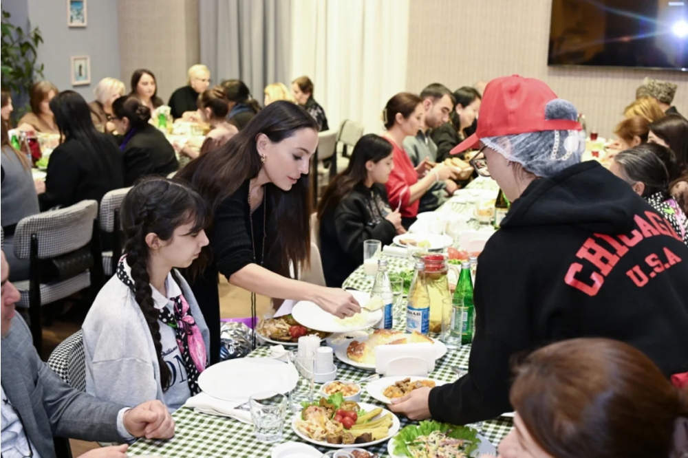 “İki sahil” xəbər verir ki, əvvəlcə Leyla Əliyeva “Bizim Mətbəx” layihəsinin könüllüləri ilə birlikdə yeməklərin iftar süfrəsi üçün hazırlanmasında yaxından iştirak edib. Müqəddəs Ramazan ayının mənəvi dəyərlərinin paylaşıldığı məclisdə sakinlərlə birlikdə iftar edilib, dualar oxunub.