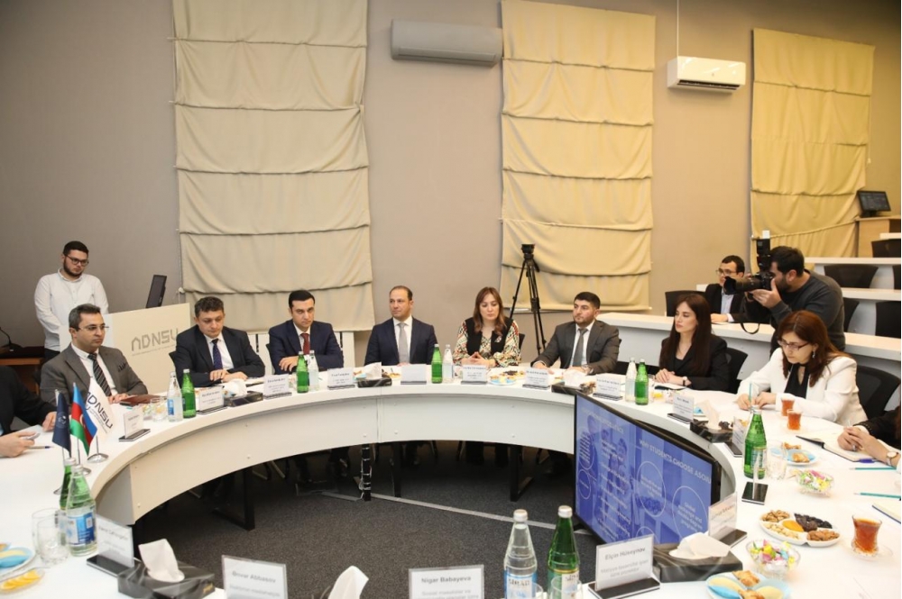 Daha sonra ADNSU-nun Startap və texnologiyaların transferi ofisinin müdiri Əhməd Əhmədzadə universitetin innovasiya mərkəzinin fəaliyyət istiqamətləri üzrə təqdimatla çıxış edib. Görüşdə innovasiya ekosisteminin inkişafı, eləcə də BSU ilə bu sahədə əməkdaşlıq perspektivləri müzakirə olunub.