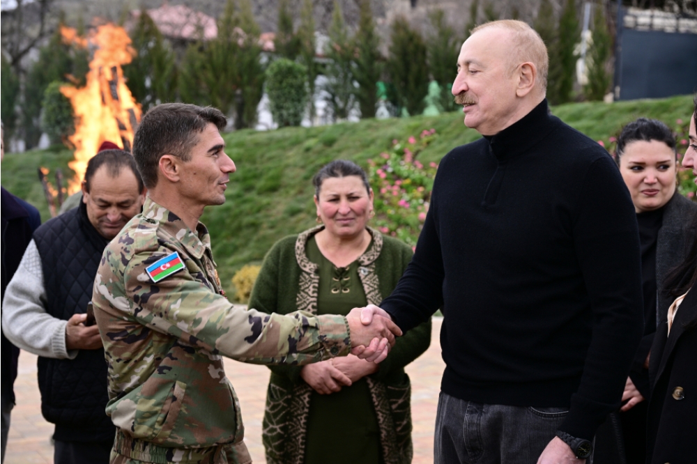 Dövlətimizin başçısı Xanoba kəndində sakinlərlə birlikdə Novruz tonqalını alovlandırıb.