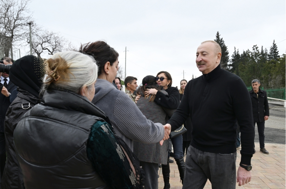 Daha sonra Prezident İlham Əliyev və birinci xanım Mehriban Əliyeva Xanobaya qayıdan kənd sakinləri ilə görüşüblər.