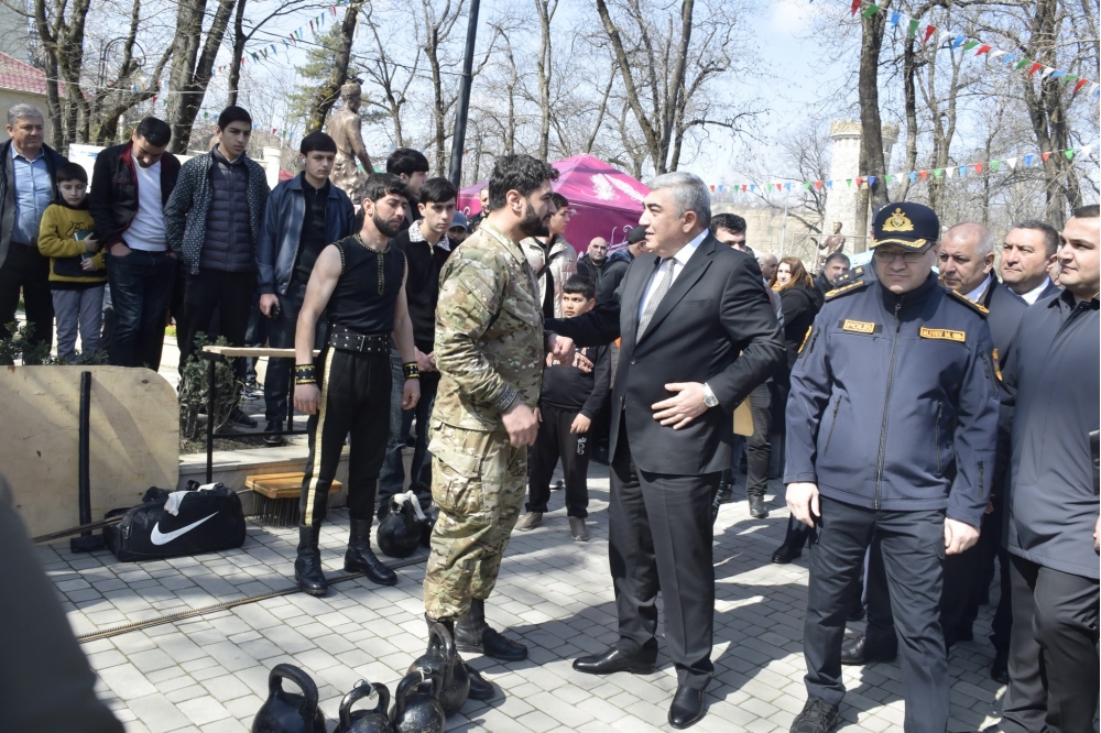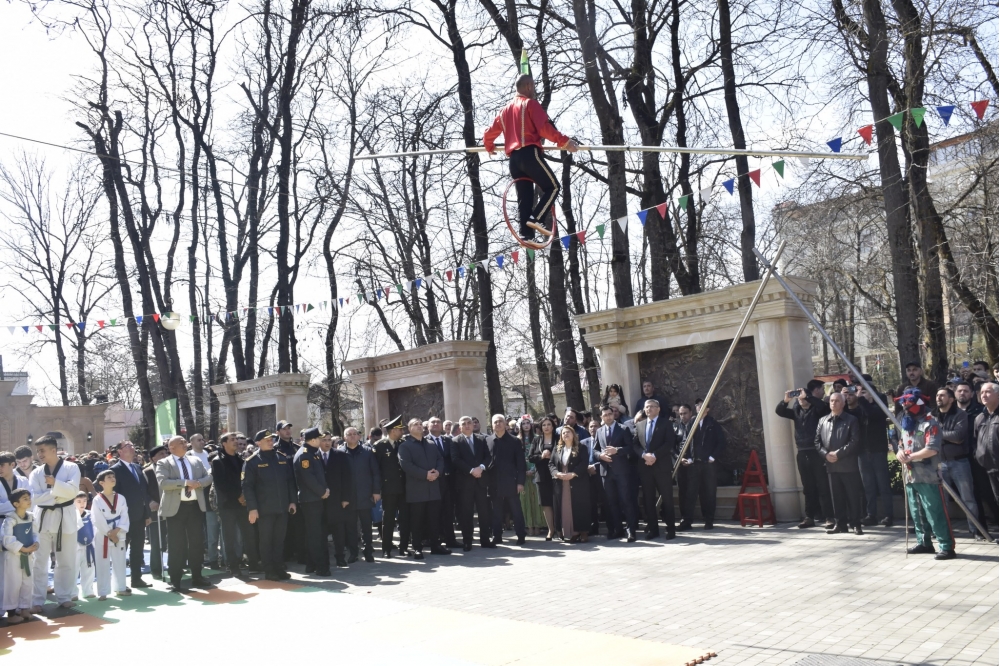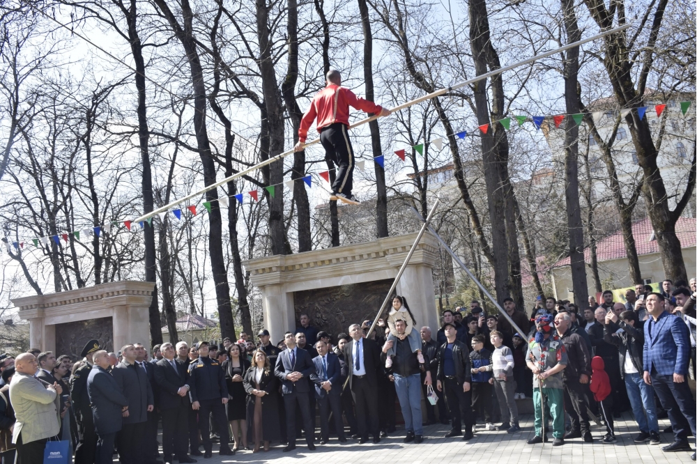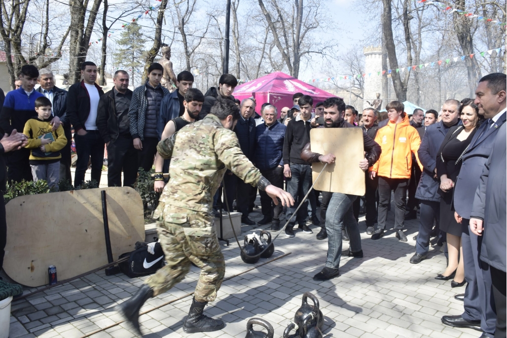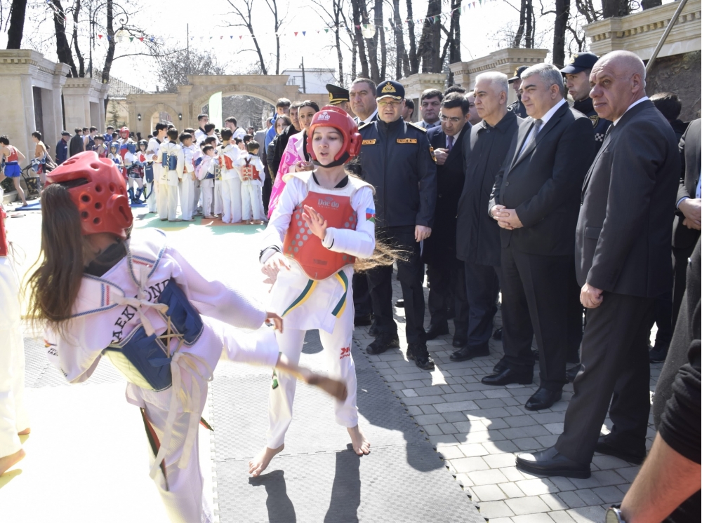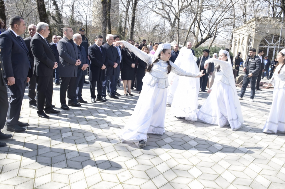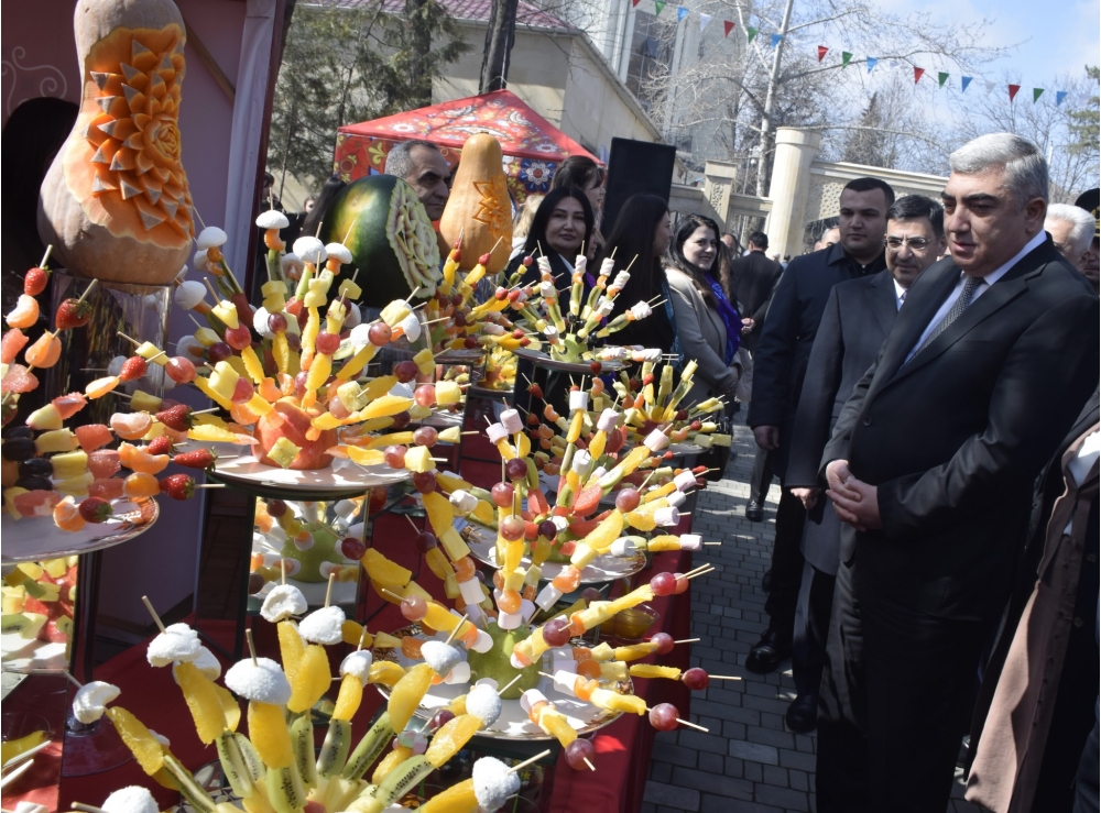 Tədbir Bahar qızı və Dədə Qorqudun Novruz təbriklərini çatdırması ilə başlamışdır. Daha sonra Rayon İcra Hakimiyyətinin başçısı İlqar Mahmudov aidiyyəti şəxslərlə birlikdə parkın ərazisində rayonun idarə, müəssisə və təşkilatları, inzibati ərazi dairələri üzrə nümayəndəlikləri və bələdiyyələr tərəfindən təşkil edilmiş bayram guşələrinə baxış keçirmiş, Novruz bayramının rəmzi tonqalını alovlandırmışdır.