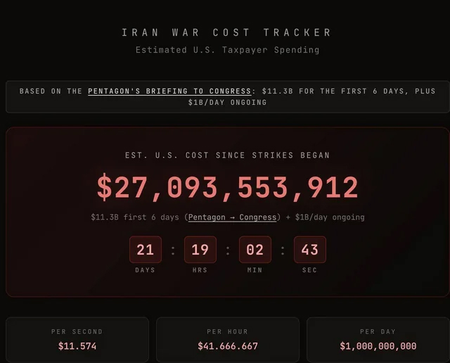 “İki sahil” xəbər verir ki, "Iran War Cost Tracker" portalı bu iddia ilə çıxış edib.