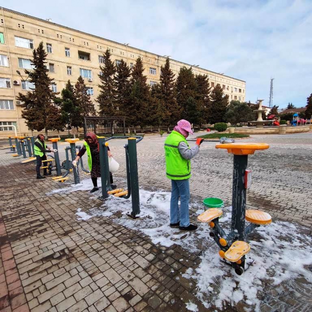 Həmçinin prospekt və küçələrin, səki kənarlarının, bordürlərin və buradakı işıq dirəklərinin, məhəccərlərin, park və istirahət yerlərində oturacaqların yuyulması həyata keçirilib, həyət və yaşayış məhəllələrində təmizlik işləri görülüb. İctimai-iaşə, ticarət və digər obyektlərin vitrinləri təmizlənib, ətrafında səliqə-sahman işləri aparılıb.