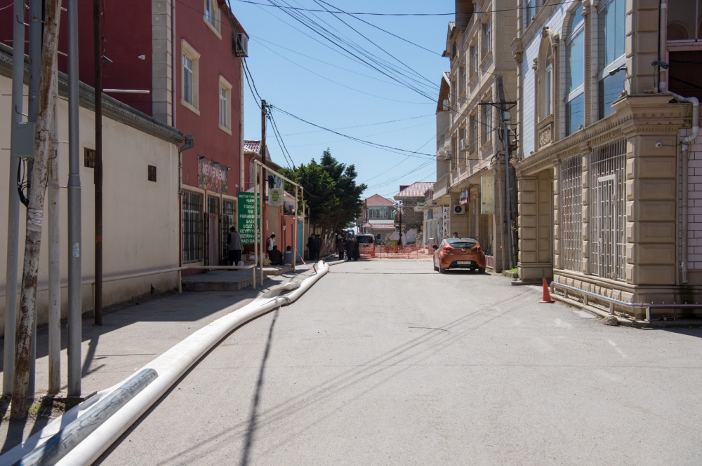 Qeyd edək ki, həmin ünvanda evlərin altında qalan 500 millimetrlik çuğun xəttin 100 metr hissəsi polietilen boru ilə əvəzlənərək yeri dəyişdirilib. Qəzalı vəziyyətdə olan evin altında qalan 100 və 150 millimetrlik köhnə polad borular da ləğv edilərək diametri 110 və 160 millimetrlik yeni polietilen borularla əvəz olunub.