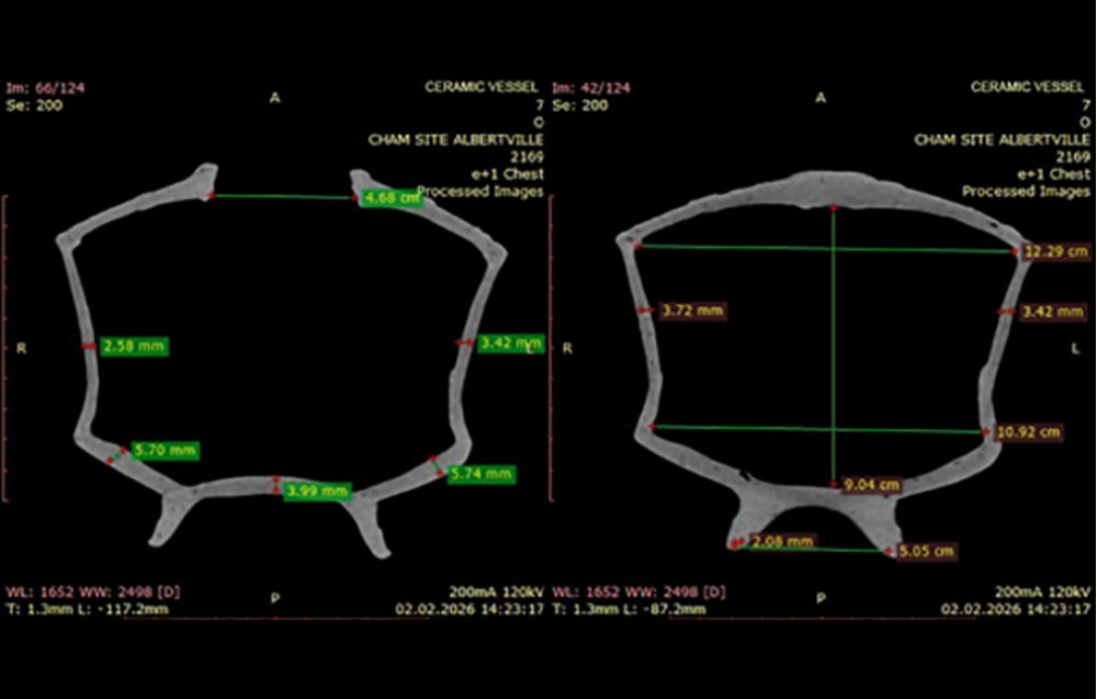 Tədqiqatın ən mühüm yeniliklərindən biri isə bu saxsı qabın ilk dəfə olaraq kompüter tomoqrafiyası (KT) vasitəsilə analiz edilməsidir. Qeyri-dağıdıcı bu metod arxeologiyada nadir hallarda tətbiq olunur və abidənin fiziki bütövlüyünə zərər vermədən onun daxili quruluşunu öyrənməyə imkan verir.