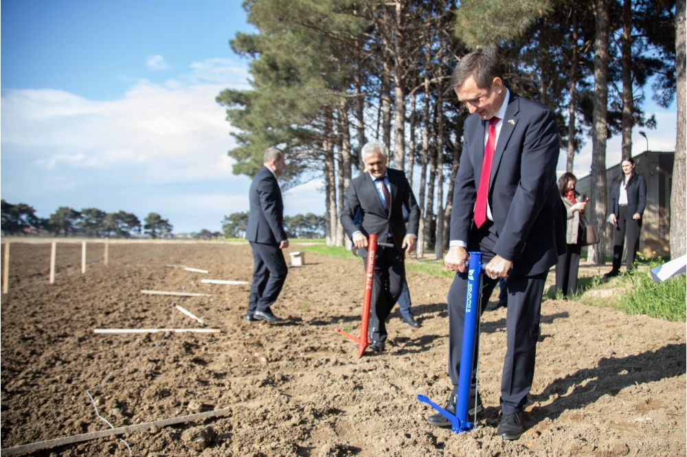 Daha sonra Pirşağıda Tərəvəzçilik Elmi-Tədqiqat İnstitutunun ərazisində ağacəkmə aksiyası keçirilib. Latviya tərəfi instituta 4800 ədəd şam ağacı hədiyyə edib. Əkin prosesi qonaqların özləri ilə gətirdikləri xüsusi mexaniki ağac əkən qurğularla həyata keçirilib.
