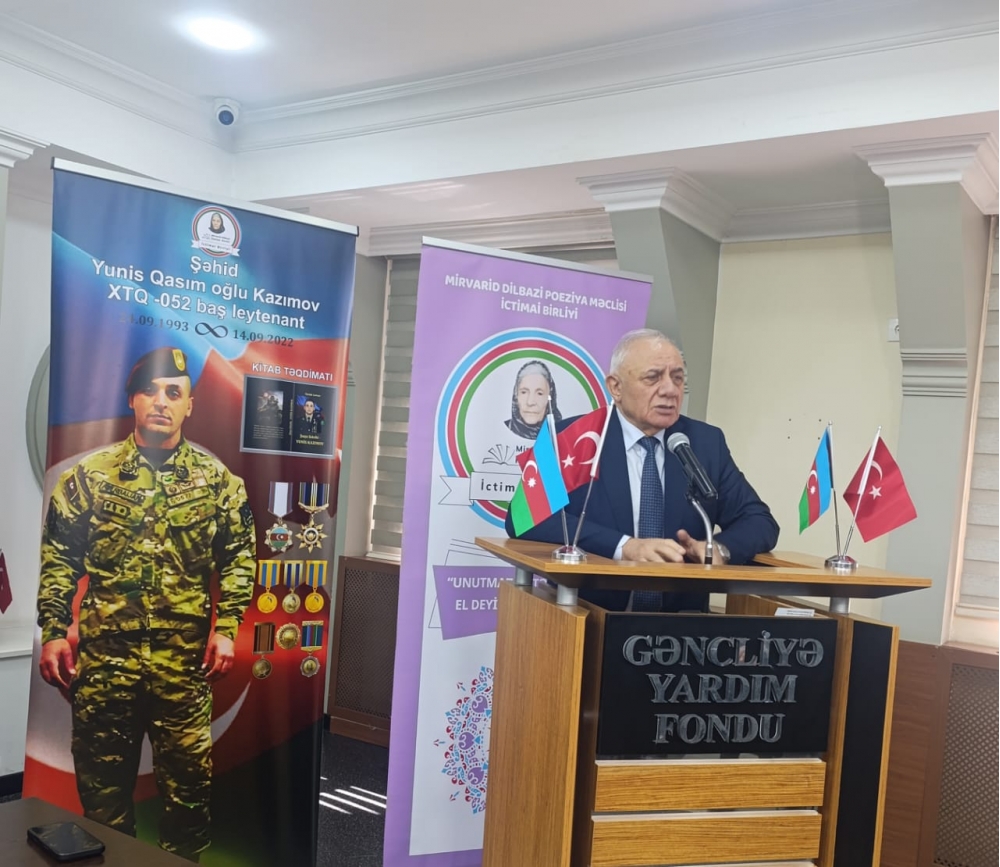 Mirvarid Dilbazi Poeziya Məclisi İctimai Birliyinin təşkilatçılığı ilə Gəncliyə Yardım Fondunda şəhid Yunis Qasım oğlu Kazımovun əziz xatirəsinə həsr olunmuş “Şuşa fatehi – Yunis Kazımov” kitabının təqdimat mərasimi keçirilib.
