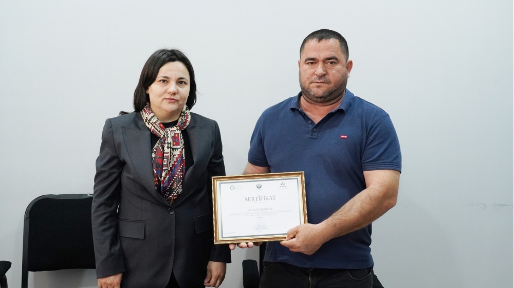 Təlimləri uğurla başa vuran kənd sakinlərinə sertifikatlar təqdim olunub. Müqavilə imzalayan bütün fermerlər qeyd edilən təlimləri uğurla başa vurub.