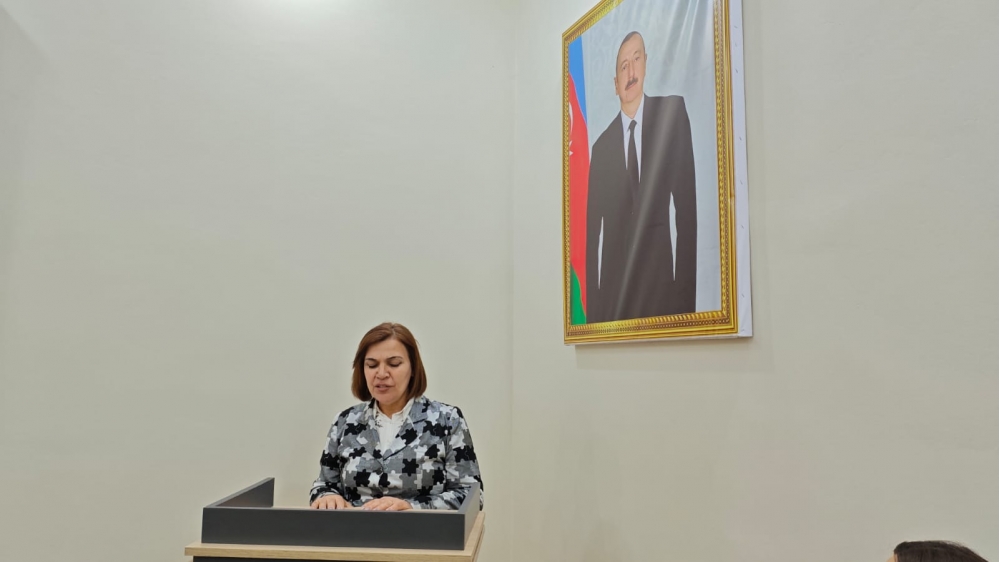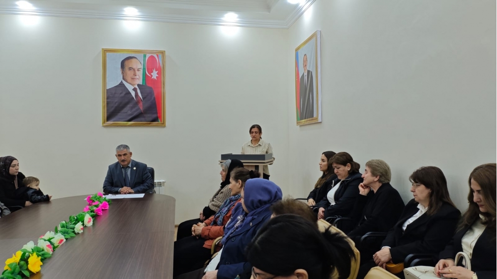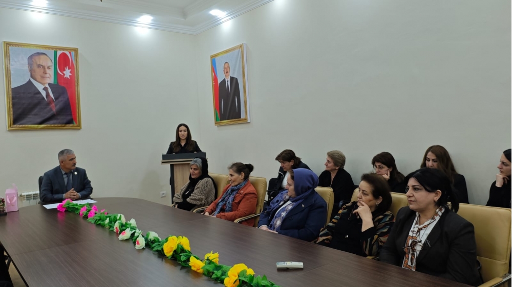 Təşkilat sədri nitqində vurğuladı ki, bu gün respublikamızda dövlət qadın siyasəti, ulu öndər Heydər Əliyevin bu istiqamətdə əsasını qoyduğu ənənələr ölkə Prezidenti cənab İlham Əliyev tərəfindən layiqincə davam etdirilir. Ölkə başçısı qadınların cəmiyyətdəki roluna və yerinə, onların dövlət idarəçiliyində təmsil olunmalarına, irəli çəkilmələrinə diqqətlə yanaşır. Müasir dövrdə qadınlarımızın ölkə həyatında rolunu yüksək qiymətləndirən Prezident İlham Əliyev tərəfindən “Əminəm ki, cəmiyyət qarşısında öz məsuliyyətini bütün dərinliyi ilə dərk edən Azərbaycan qadını bundan sonra da müstəqil Respublikamızın tərəqqisinə böyük töhfələr verəcək” söyləməsi Azərbaycan qadınına verilən ən yüksək dəyərin nümunəsidir.