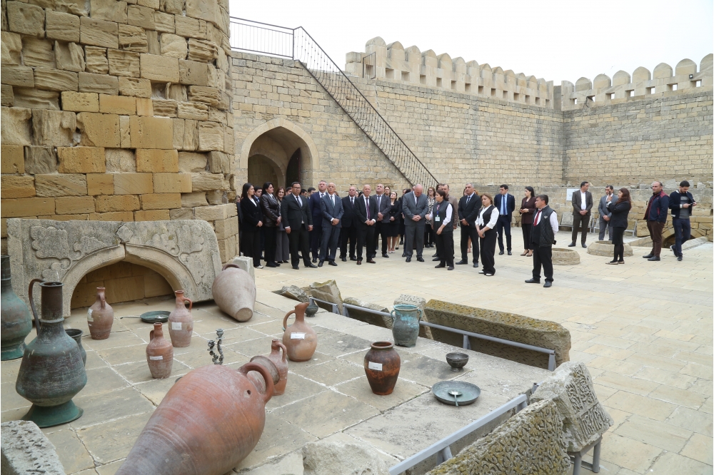 Tarixi ekskursiya muğam sədaları altında və milli çay süfrəsi ətrafında səmimi söhbətlə davam etdirildi.