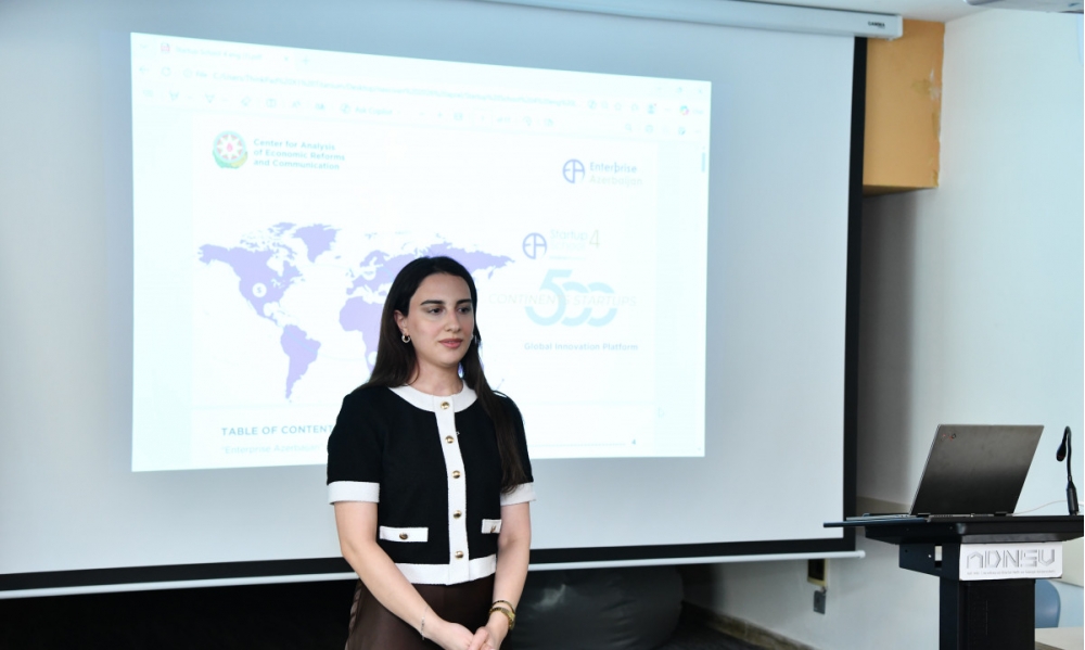 İqtisadi İslahatların Təhlili və Kommunikasiya Mərkəzinin operatoru olduğu “Enterprise Azerbaijan” portalının təşəbbüsü ilə həyata keçirilən “Startup School 4” layihəsi çərçivəsində infosessiya keçirilib. Azərbaycan Dövlət Neft və Sənaye Universitetində (ADNSU) keçirilən infosessiya layihənin əsas şüarı olan “Beş qitə, 500 startap” konsepsiyasına həsr olunub.