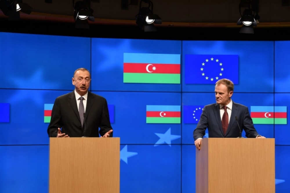 Daha sonra Azərbaycan Prezidenti İlham Əliyev və Avropa İttifaqı Şurasının prezidenti Donald Tusk mətbuata birgə bəyanatla çıxış ediblər.