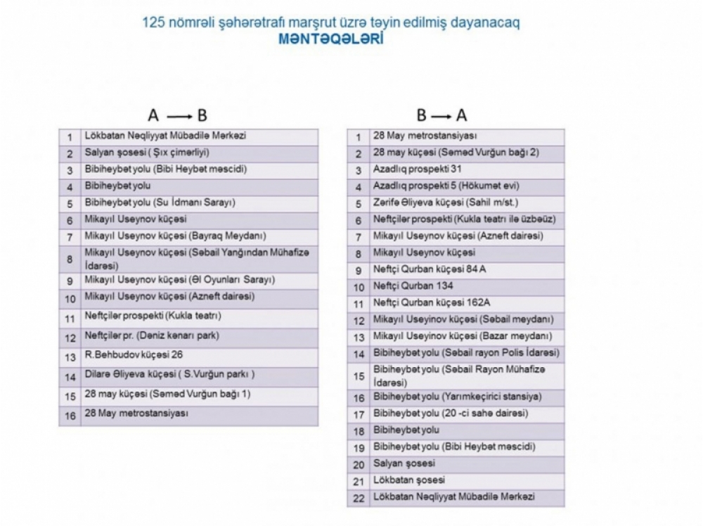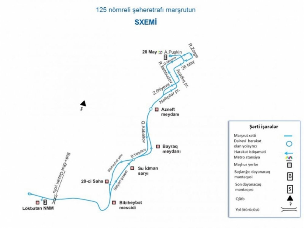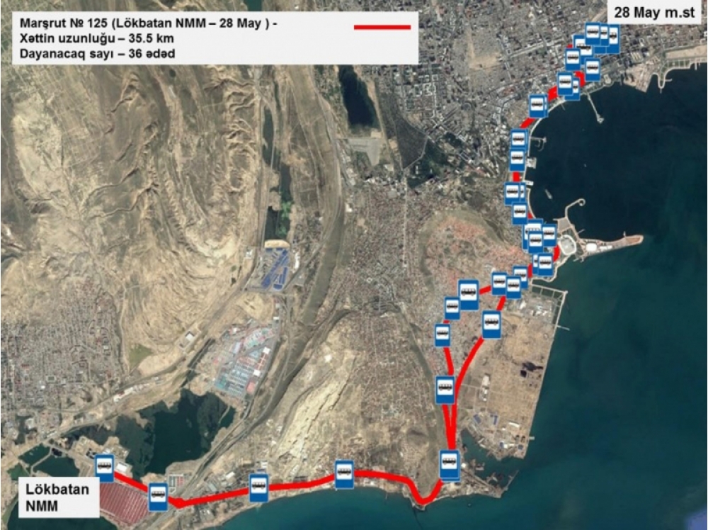 Bakı Nəqliyyat Agentliyindən (BNA) Trend-ə verilən məlumata görə, müsabiqəyə çıxarılan 125 nömrəli marşrut xətti metronun "28 May" stansiyası - "Lökbatan" Nəqliyyat Mübadilə Mərkəzini birləşdirəcək. Xəttin ümumi uzunluğu 35.5 km, xətt üzrə dayanacaq sayı isə 36 ədəd müəyyən olunub.