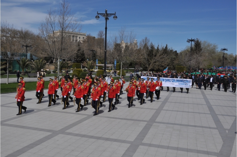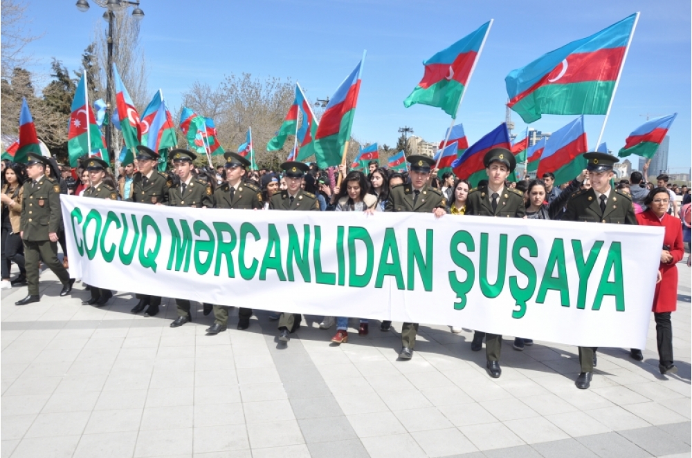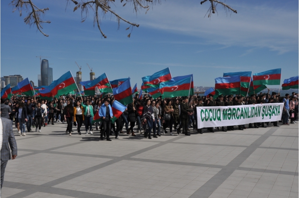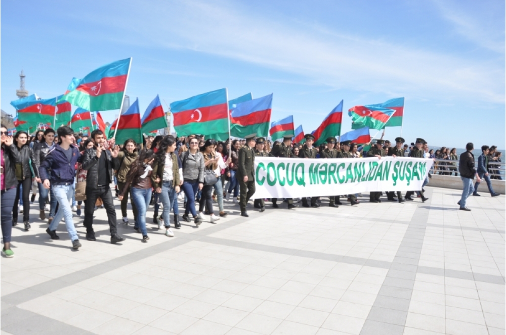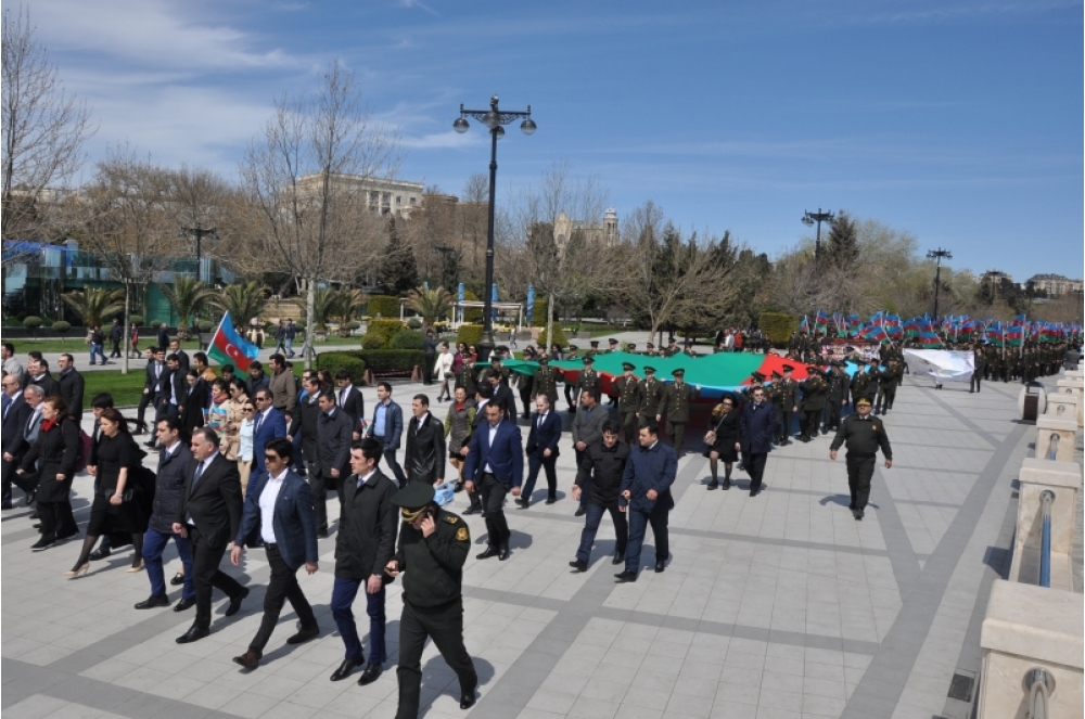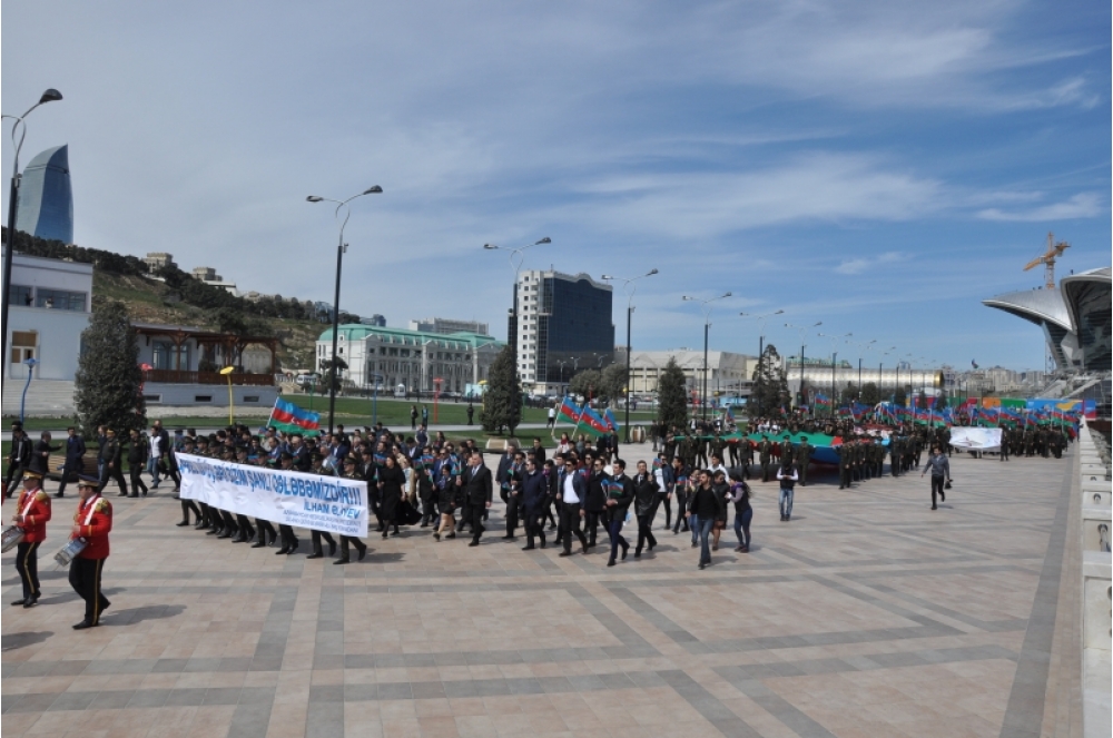 Minlərlə gəncin iştirak etdiyi «Zəfər yürüşü» Dənizkarı Milli Parkdakı «Saat qülləsi»nin yanından başlayıb. Gənclər yürüş boyunca «Şəhidlər ölməz, Vətən bölünməz!», «Qarabağ bizimdir, bizim olacaq!», «Torpaqlarımızı işğaldan azad etmək üçün Ali Baş Komandanın əmrinə hər an hazırıq!» və digər vətənpərvər ruhlu şüarlar səsləndiriblər.