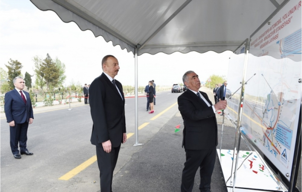 Prezident İlham Əliyev Mingəçevir-Bəhramtəpə avtomobil yolunun Mingəçevir-Mingəçevir stansiyası hissəsinin açılışında iştirak edib