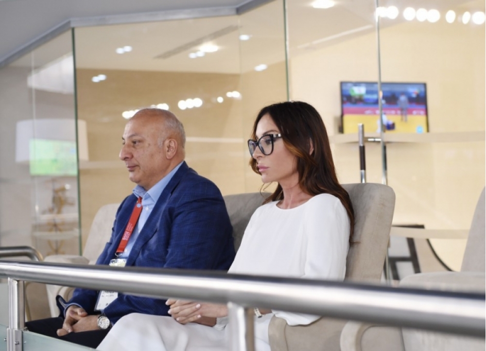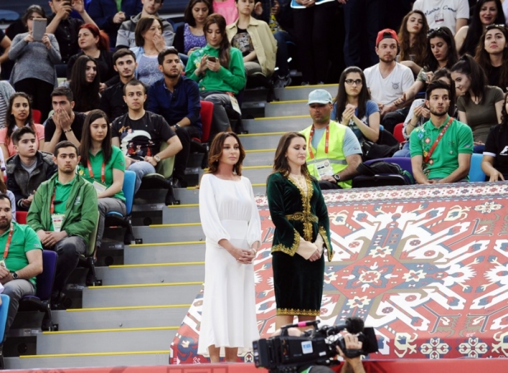 AZƏRTAC xəbər verir ki, Azərbaycan Respublikasının Birinci vitse-prezidenti, IV İslam Həmrəyliyi Oyunlarının Təşkilat Komitəsinin sədri Mehriban Əliyeva gimnastların yarışlarına baxıb.
