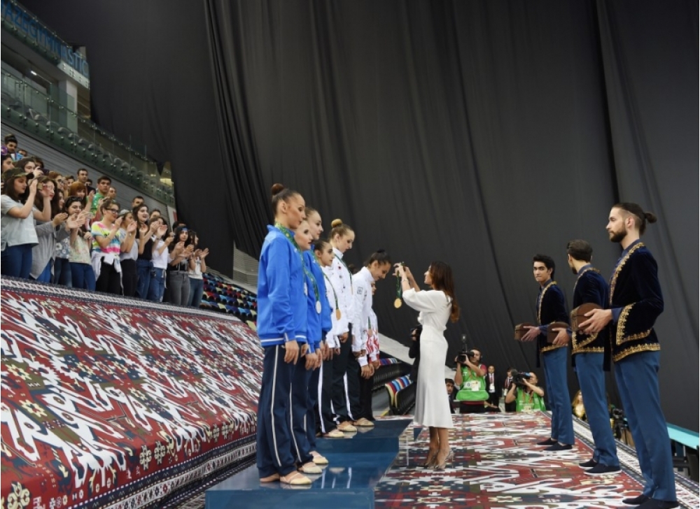 Medalları qaliblərə Azərbaycan Respublikasının Birinci vitse-prezidenti, Azərbaycan Gimnastika Federasiyasının prezidenti Mehriban Əliyeva təqdim etdi.