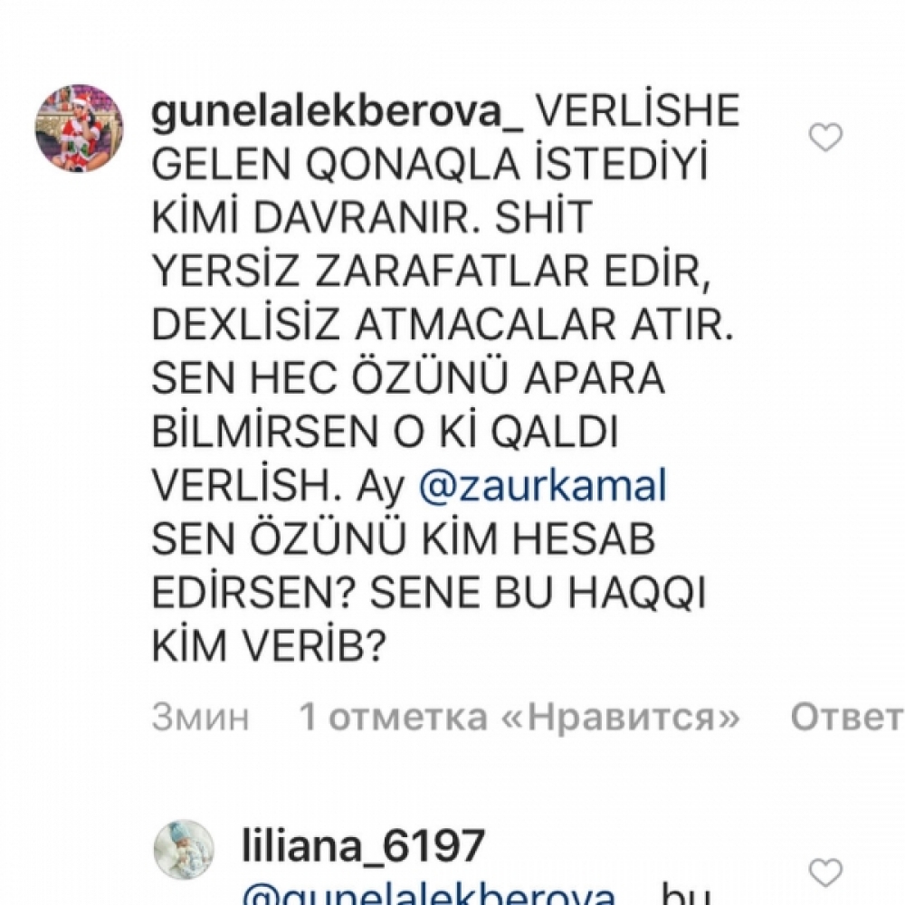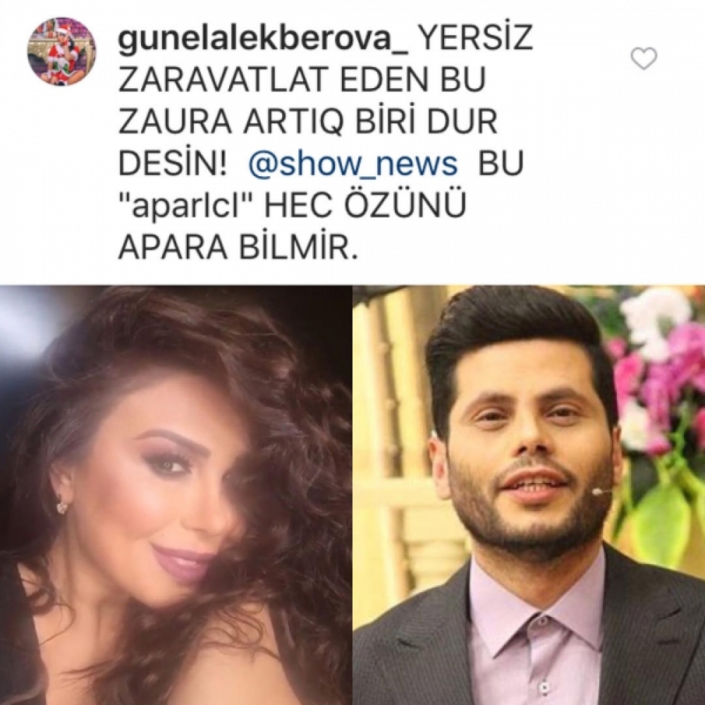 Müğənni Günel Ələkbərova da həmkarı E. Xəlilovanın fikrini dəstəkləyib və Zaur Kamalı dırnaqarası aparıcı adlandırıb: “Yersiz zarafatlar edən bu Zaura biri dur desin. Verilişə gələn qonaqla istədiyi kimi davranır. Şit, yersiz zarafatlar edir, dəxlisiz atmacalar atır. Sən heç özünü apara bilmirsən, ay Zaur Kamal, o ki, qaldı veriliş aparasan. Sən özünü kim hesab edirsən, sənə bu haqqı kim verib?”