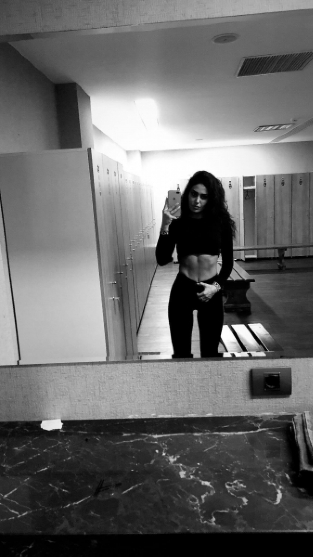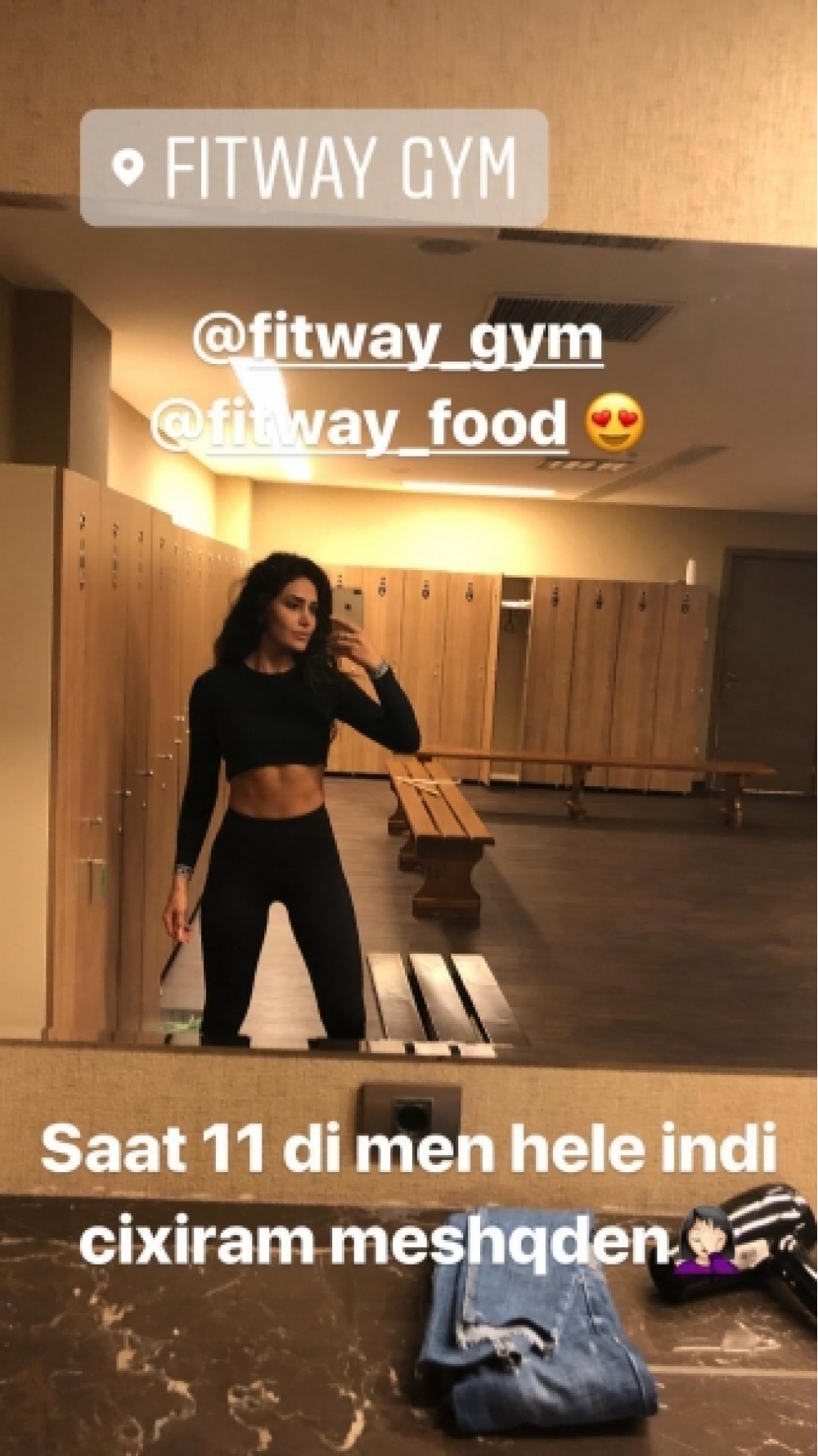 Aktrisa Pərvin Abıyeva qarın əzələlərini nümayiş editib.