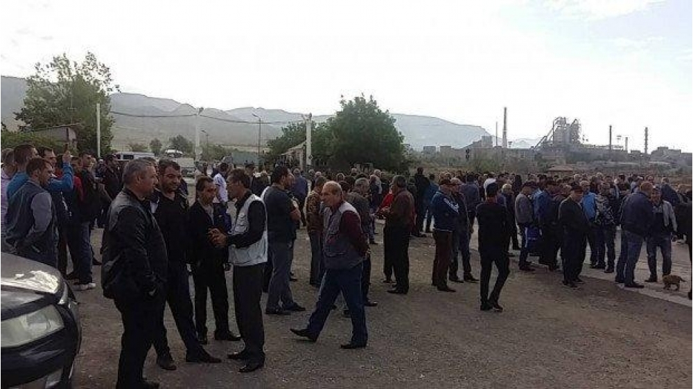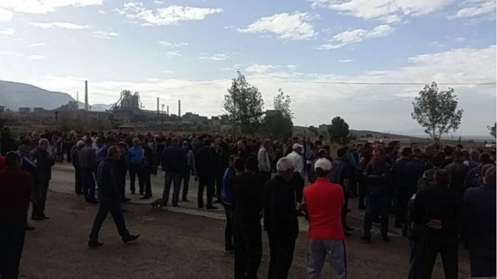 Ermənistanın Ararat vilayətində sement zavodunun işçiləri etiraz aksiyası keçirirlər.